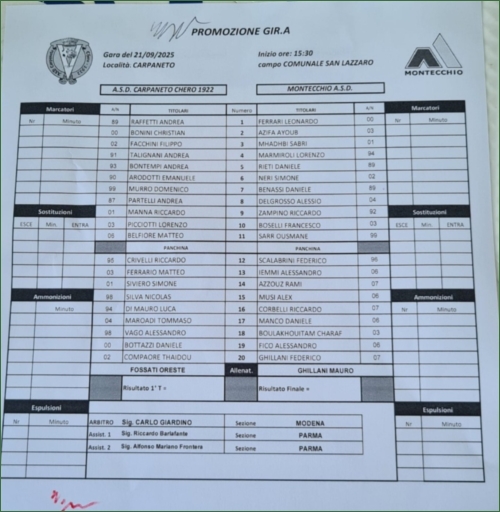 CARPANETO CHERO 1922-MONTECCHIO: 0-2