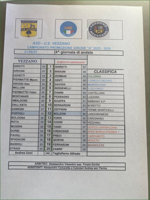 VEZZANO-FUTURA FORNOVO MEDESANO: 1-2