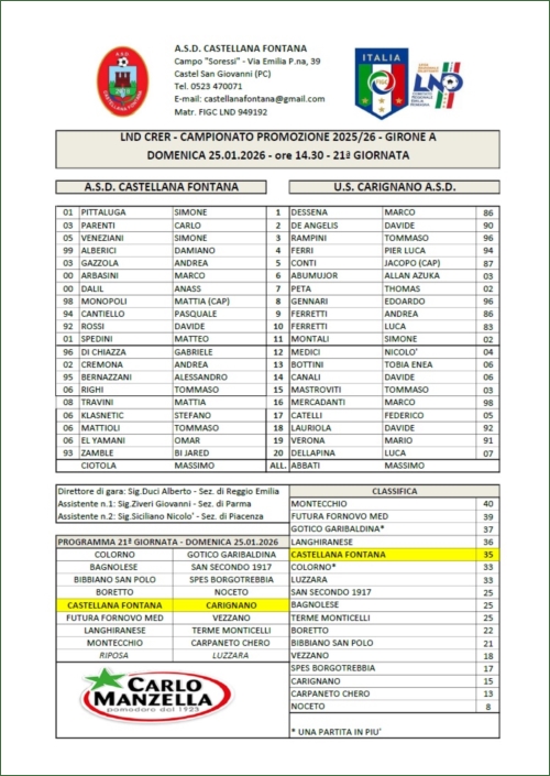 CASTELLANA FONTANA-CARIGNANO: 5-3