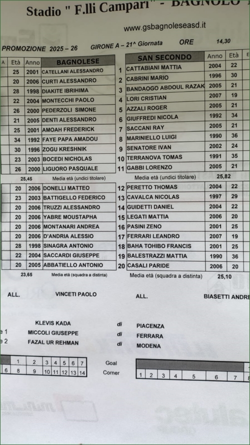 BAGNOLESE-SAN SECONDO 1917: 0-0