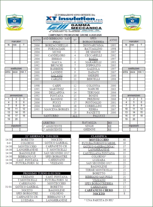 BIBBIANO SAN POLO-SPES BORGOTREBBIA: 1-2