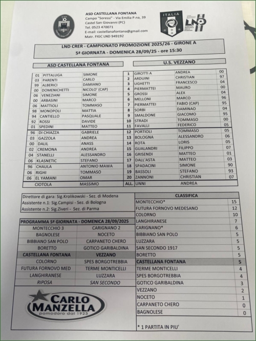 CASTELLANA FONTANA-VEZZANO: 3-0