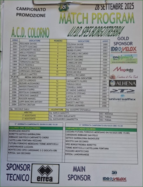 COLORNO-SPES BORGOTREBBIA: 2-1
