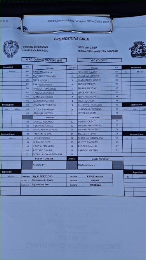 CARPANETO CHERO 1922-COLORNO: 3-3
