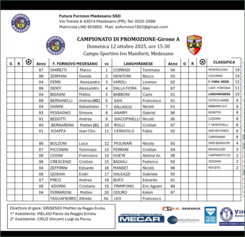 FUTURA FORNOVO MEDESANO-LANGHIRANESE VALPARMA: 1-0