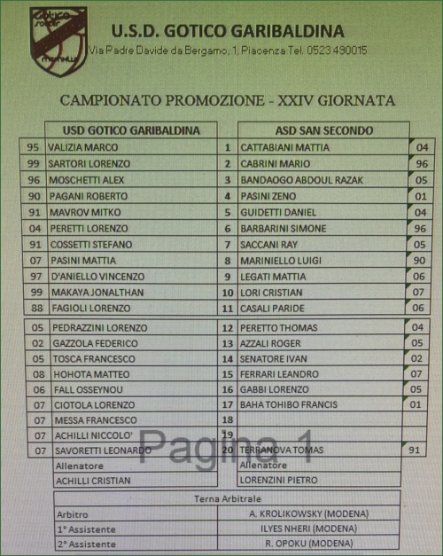 GOTICO GARIBALDINA-SAN SECONDO 1917: 2-0