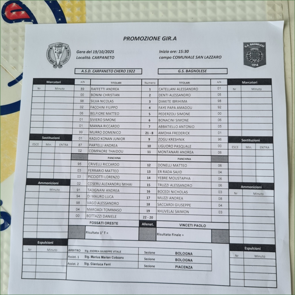 CARPANETO CHERO 1922-BAGNOLESE: 2-3