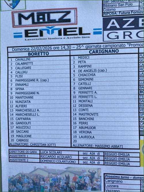 BORETTO-CARIGNANO: 3-2