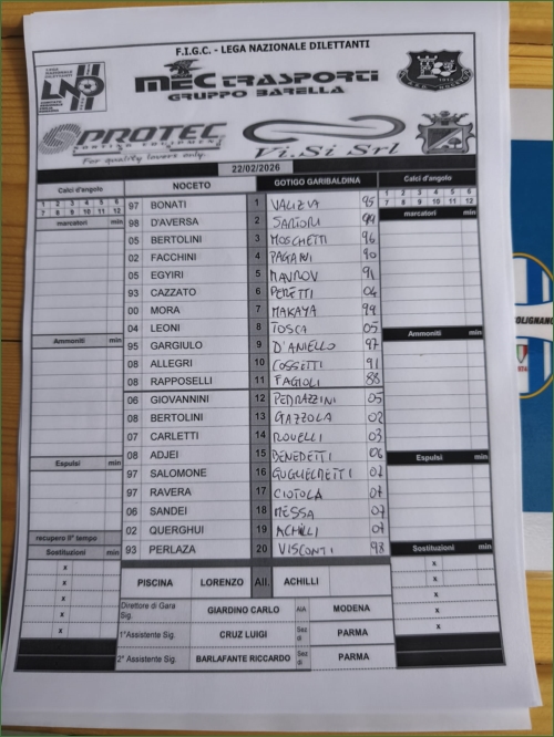 NOCETO-GOTICO GARIBALDINA: 0-3