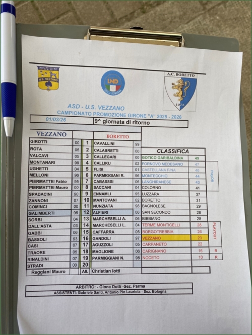 VEZZANO-BORETTO: 1-1