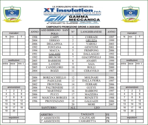 BIBBIANO SAN POLO-LANGHIRANESE VALPARMA: 2-0