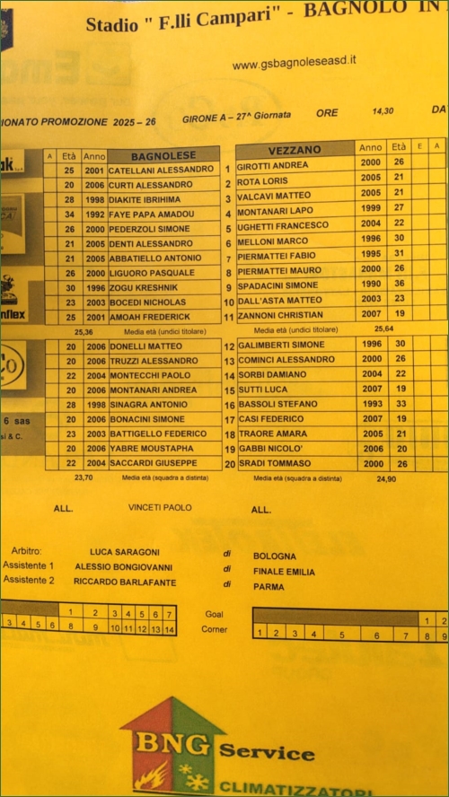 BAGNOLESE-VEZZANO: 0-0