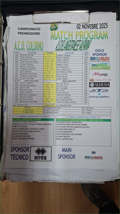 COLORNO-LANGHIRANESE VALPARMA: 3-1