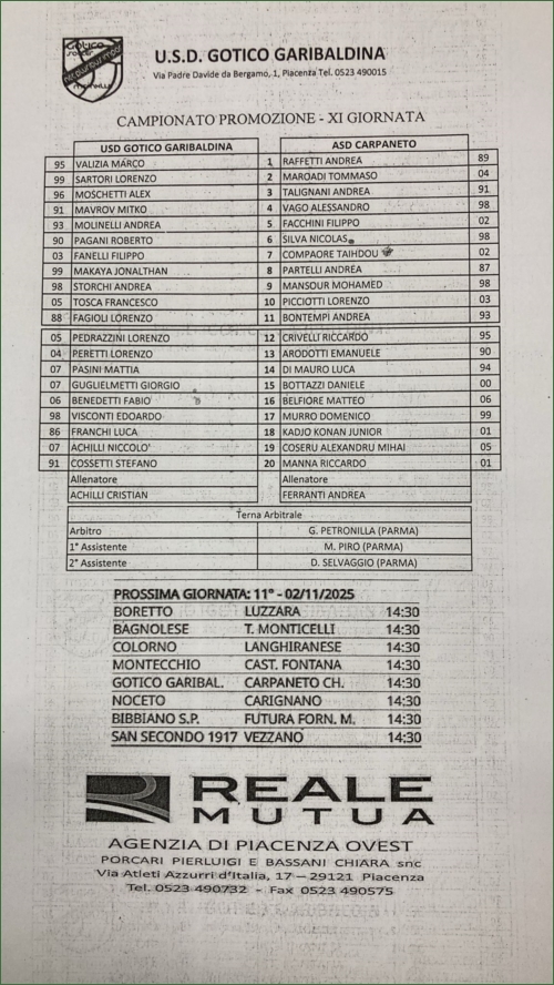 GOTICO GARIBALDINA-CARPANETO CHERO 1922: 3-2