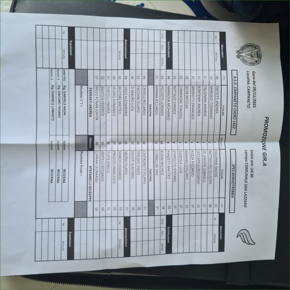 CARPANETO CHERO 1922-SPES BORGOTREBBIA: 1-0
