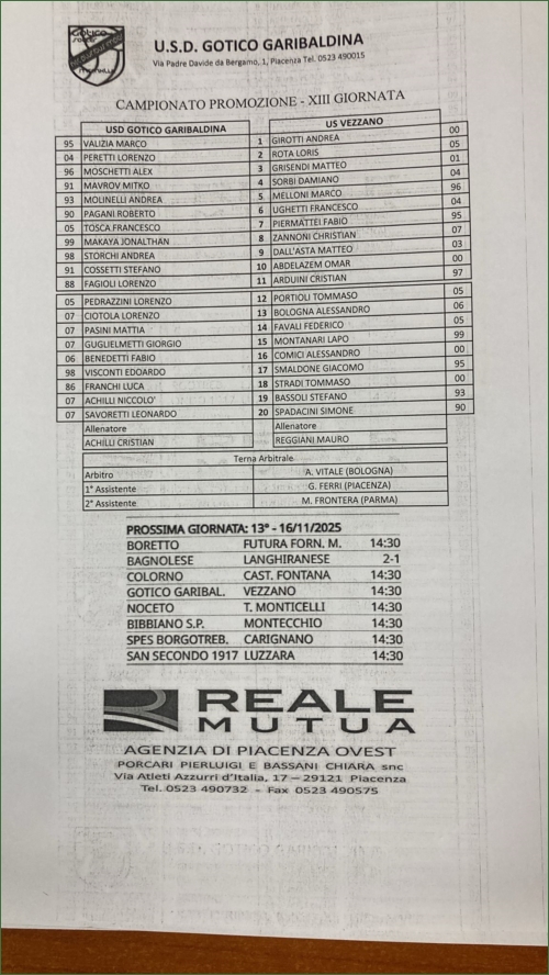 GOTICO GARIBALDINA-VEZZANO: 1-0