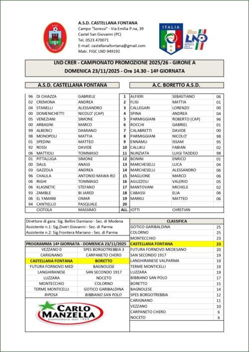 CASTELLANA FONTANA-BORETTO: 3-0