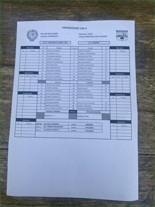 CARPANETO CHERO 1922-VEZZANO: 3-1