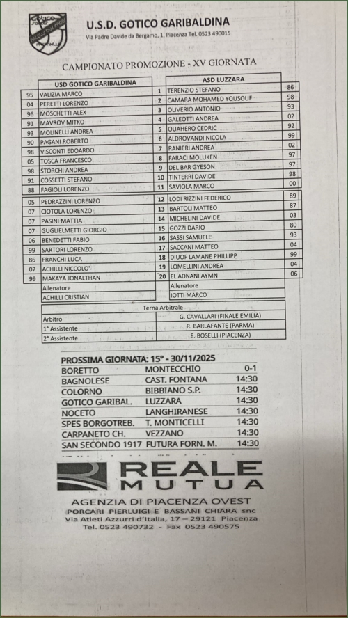 GOTICO GARIBALDINA-LUZZARA: 2-2