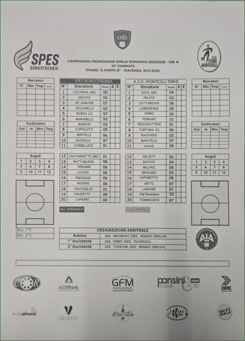 SPES BORGOTREBBIA-TERME MONTICELLI: 1-0
