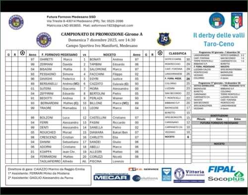 FUTURA FORNOVO MEDESANO-NOCETO: 2-1
