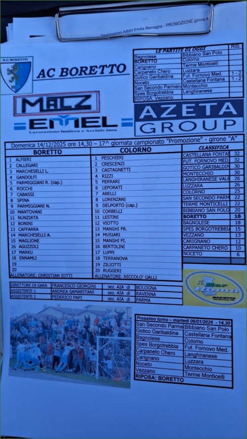 BORETTO-COLORNO: 0-3