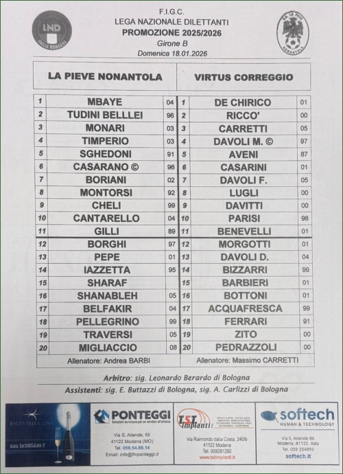 LA PIEVE NONANTOLA-VIRTUS CORREGGIO: 3-2