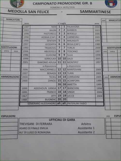 MEDOLLA SAN FELICE-SAMMARTINESE: 2-1