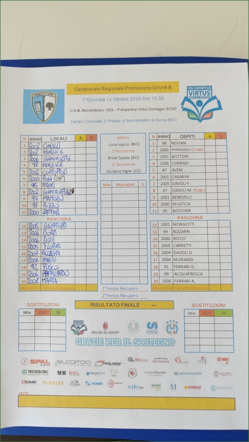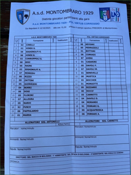 MONTOMBRARO 1929-VIRTUS CORREGGIO: 0-1