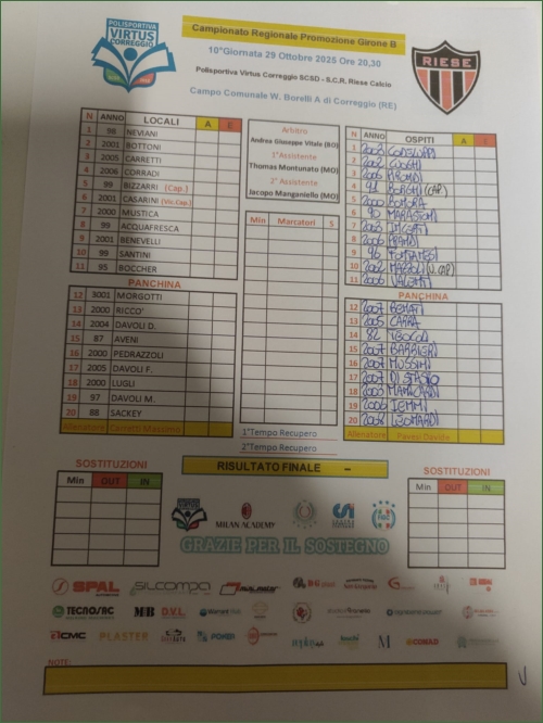 VIRTUS CORREGGIO-RIESE: 1-2