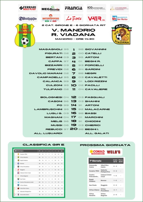 VIRTUS MANDRIO-RAPID VIADANA: 2-0