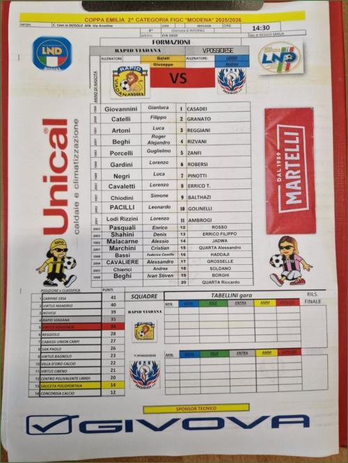 RAPID VIADANA-VIRTUS POSSIDIESE: 1-0