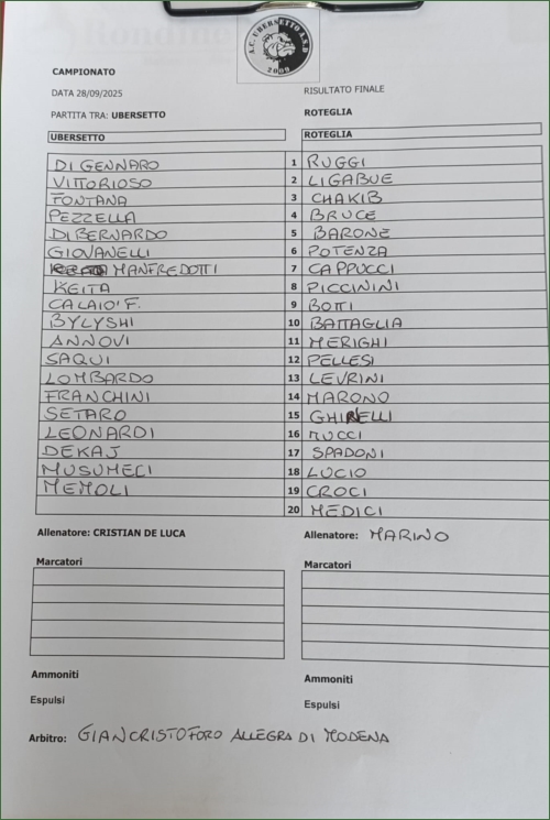 UBERSETTO-POLISPORTIVA ROTEGLIA: 2-4