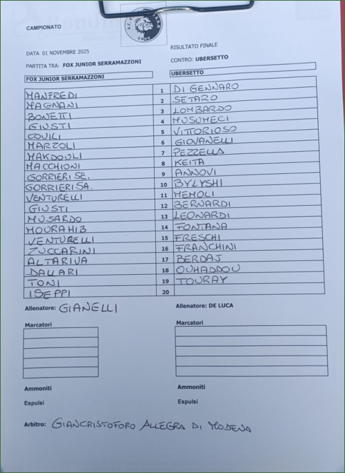 FOX JUNIOR SERRAMAZZONI-UBERSETTO: 0-0