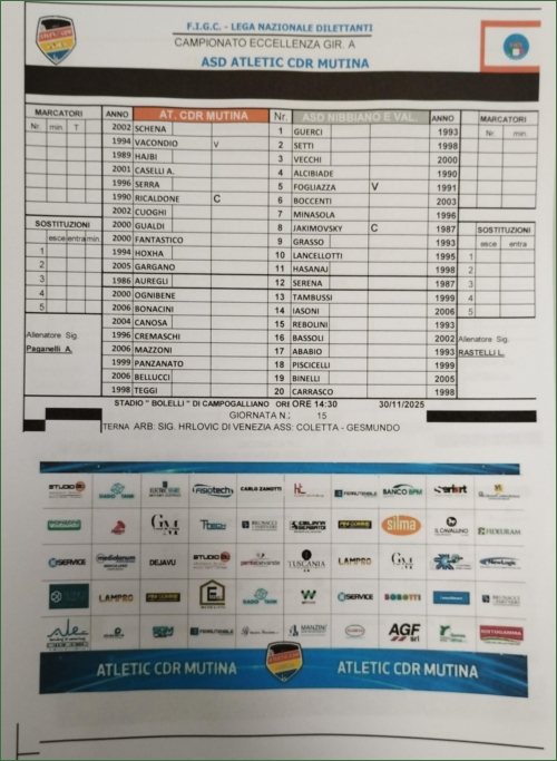 ATLETIC C.D.R. MUTINA-NIBBIANO & VALTIDONE: 1-1