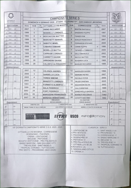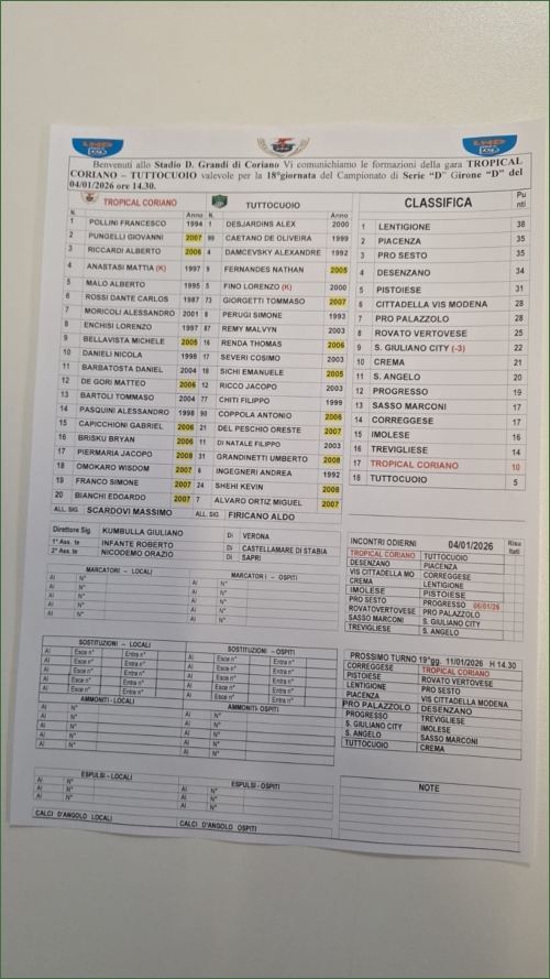 BUON 2026, SI RIPARTE DOMENICA 4 CON LA SERIE D