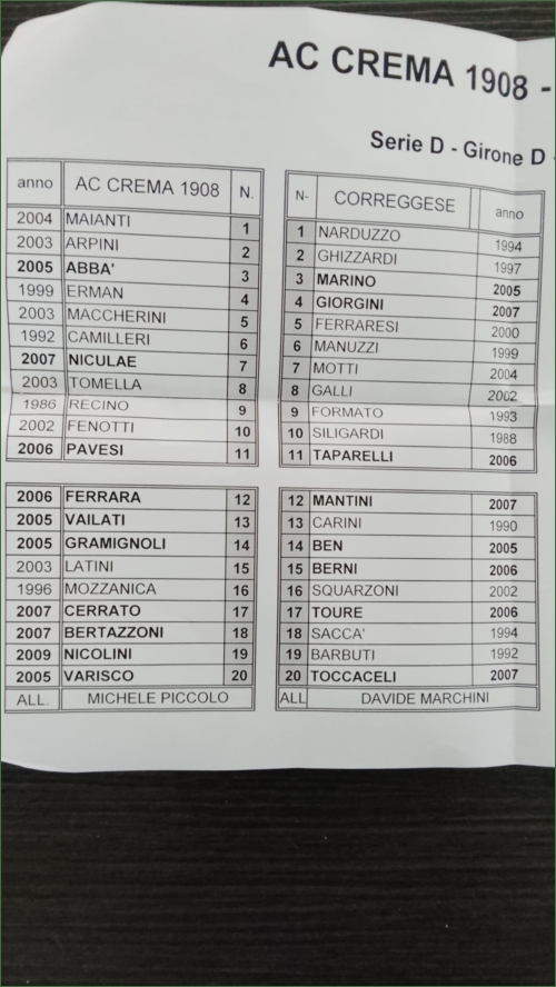 SERIE D: CREMA-CORREGGESE E TREVIGLIESE-LENTIGIONE