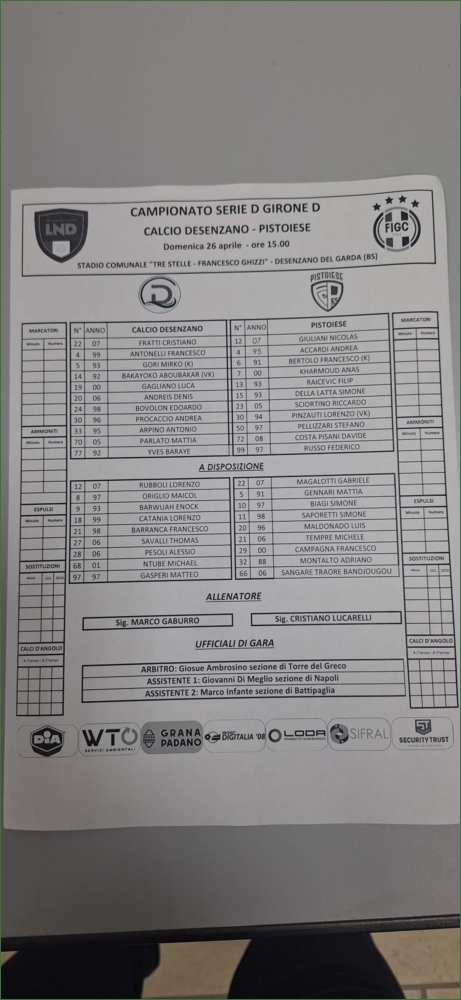 Il Desenzano contro la Pistoiese prepara la festa promozione Classifica corta, giochi aperti per playoff e salvezza diretta