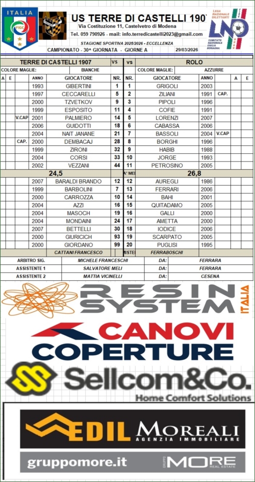 Tabellini Partite
