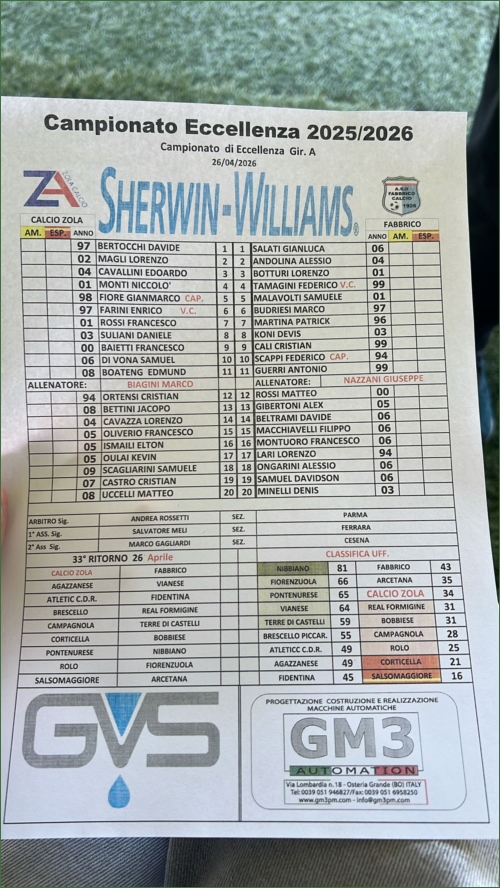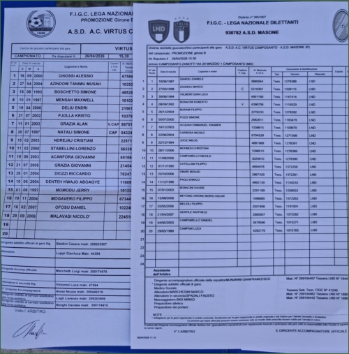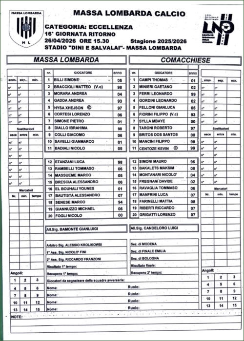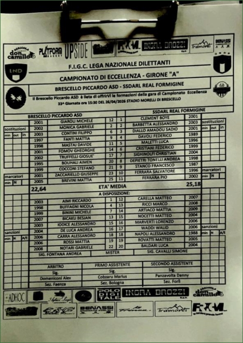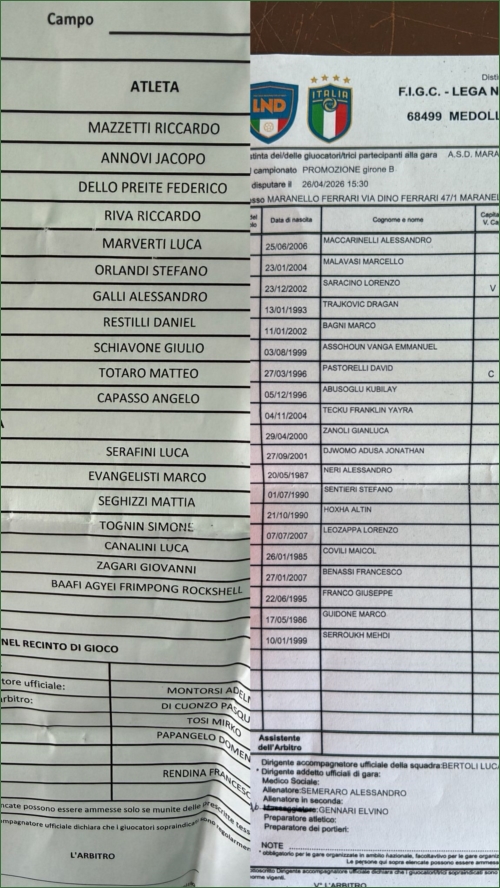 Schedina dedicata alle partite di domenica 26/04 (giocate oscurate)