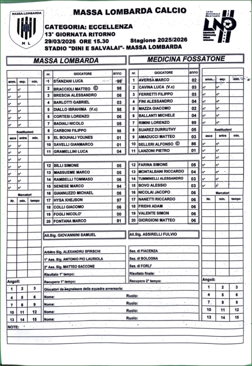 ha inserito i marcatori della partita