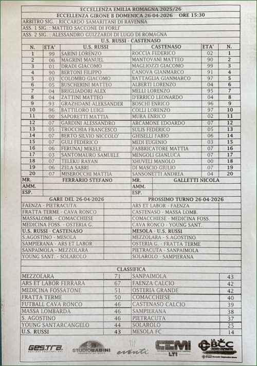 Risultati - 26/04/2026 -