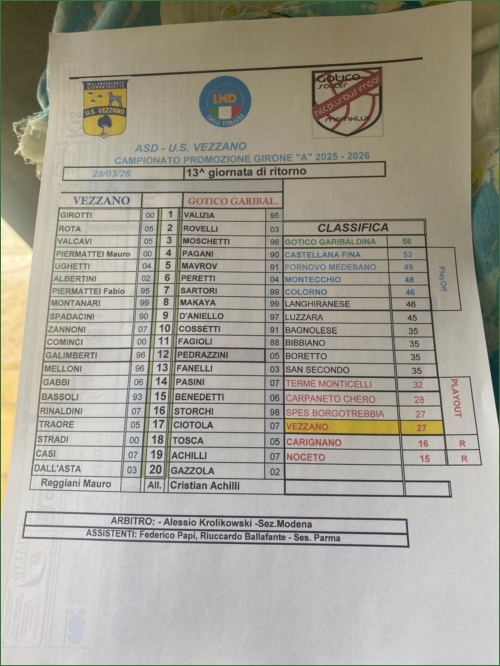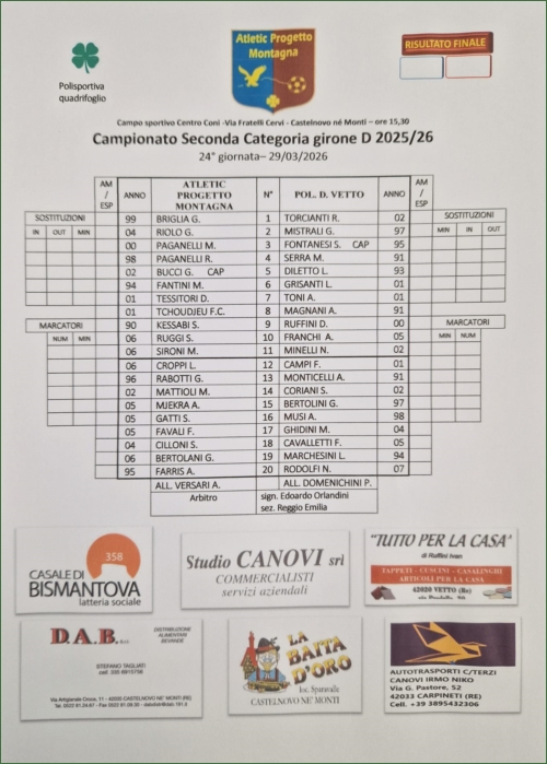 VEZZANO - ATLETIC PROGETTO MONTAGNA