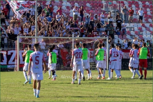 Entusiasmo, fermento, emozione. Un Carpi in rimonta piega la resistenza del Forlì, in vantaggio con Greselin alla pausa. Dopo il pari ottenuto da Sall, quasi a metà ripresa, Calanca al novantesimo fa esplodere di gioia il Cabassi. E poco importa se al Benelli vince anche il Ravenna che sommerge di gol il Certaldo. Al vertice non cambia la situazione di classifica dove la truppa di Serpini, a 180 minuti dalla conclusione, conserva sempre quattro punti di vantaggio sui giallorossi di Gadda. Un vantaggio importante che potrebbe diventare decisivo se a Imola, nella trasferta di domenica prossima, il Carpi vincesse la sfida al Galli significherebbe avere la matematica certezza di aver vinto il campionato. Se sono ridotte al lumicino le speranze del Ravenna, più incerta, invece, appare la costruzione della griglia dei playoff dove servirà ancora un turno per completare la composizione. Insieme ai bizantini che, se non altro, proveranno a conservare il secondo posto, appare sicura la posizioni del Lentigione, che con una tripletta di un Formato in grande spolvero, ha steso il Prato; quasi certa anche la presenza del Corticella, nonostante il pari al Biavati contro il Borgo San Donnino. Resta, dunque, un solo posto disponibile e il San Marino, che con una rete di Haruna ha vinto di misura contro l’Imola, con il sorpasso in classifica sul Forlì, sembra leggermente in vantaggio. Nel derby lombardo, tra due squadre ormai salve e senza particolati obiettivi da raggiungere in questa stagione, il San Giuliano rifila tre schiaffoni al Fanfulla e raggiunge il Prato al settimo posto. Dopo l’esclusione della Pistoiese, avvenuta in settimana che ha modificato la classifica, c’è bagarre in zona playout dove sono tre le squadre impegnate a lottare per evitare la retrocessione diretta. Con il Sant’Angelo che ha osservato un turno di riposo e conserva un buon vantaggio sulla quart’ultima, restano impelagate il Progresso, che riaccende le speranze, con il colpo ad Agliano grazie ad un guizzo di Pinelli ad inizio ripresa, la Sammaurese che perde e si fa male da sola a Budrio contro il Mezzolara e, più staccato, il Borgo San Donnino a cui serve, però, un’impresa per raggiungere gli spareggi. Salutano la compagnia e scendono ufficialmente di categoria il Mezzolara, nonostante il largo successo contro la Sammaurese e il Certaldo battuto di brutto a Ravenna.