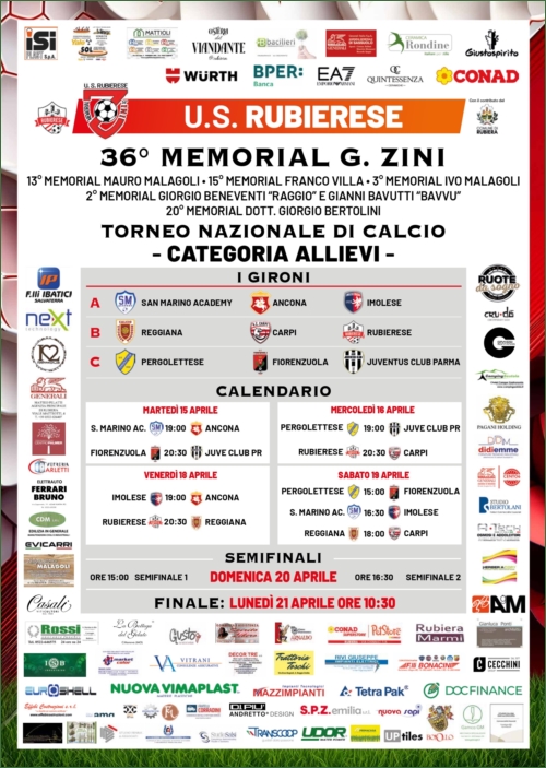 “Anche quest’anno, nel periodo pasquale, dal 15 al 21 aprile, la Rubierese è orgogliosa di organizzare il Torneo Nazionale categoria Allievi “Gustavo Zini”, giunto alla sua 36a edizione. Questo storico evento, che dal 1987 porta a Rubiera giovani talenti del calcio da tutta Italia, rappresenta un momento di grande aggregazione per la nostra comunità e per tutti gli appassionati di sport. Siamo entusiasti di accogliere nuovamente allo stadio “Valeriani” squadre, atleti e tifosi, certi che assisteremo, come sempre, a partite di altissimo livello, ricche di emozioni e di sano agonismo. Il Torneo Zini è un appuntamento di grande tradizione per la nostra società, un simbolo dell’impegno che mettiamo ogni anno nella promozione dello sport come veicolo di crescita e socialità. In un periodo non facile per i tornei di calcio giovanile, siamo orgogliosi di riproporre ancora una volta questa competizione, offrendo nel periodo pasquale un programma ricco di sfide avvincenti. Questo torneo, intitolato alla memoria di Gustavo Zini – presidente della FIGC Emilia-Romagna dal 30 agosto 1952 al 10 ottobre 1958 e successivamente dal 26 luglio 1959 al 17 giugno 1985 – è anche un’occasione per ricordare figure storiche del calcio rubierese che tanto hanno dato alla nostra società: Mauro Malagoli, Franco Villa, Ivo Malagoli, Giorgio Beneventi “Raggio”, Gianni Bavutti e mio papà, il dott. Giorgio Bertolini. Un sentito ringraziamento va a tutti coloro che hanno reso possibile questa edizione: gli sponsor, i volontari, lo staff organizzativo e l’amministrazione comunale, il cui sostegno è fondamentale per la riuscita della manifestazione. Auguro ai giovani calciatori di vivere questa competizione con entusiasmo e rispetto, affinché sia per tutti un’esperienza indimenticabile. Che vinca il migliore, nel segno dello sport e della lealtà!”.