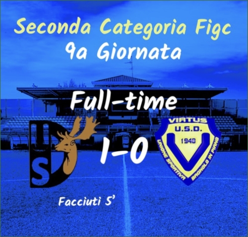 La cronaca: Virtus con il consueto 4-3-3, con i rientri di Borghi e Zoina nell’undici titolare e quello di Montanari in panchina. Stesso schieramento per i locali di Martignoni, con De Pillo riferimento offensivo; a riposo Falbo e Riella. Gara dai tanti ex, ben cinque nelle file virtussine, che rispondono ai nomi di Borghi, Bortesi, Piccinini, Iotti e Pozzi. La partenza è shock per i ragazzi di Chiozzi, che dopo 5’ sono sotto: lancio illuminante per Lerose, che scende sulla destra e mette al centro, dove la palla in seguito a un rimpallo rimane a disposizione di Facciuti, che da distanza ravvicinata mette dentro. Gli ospiti reagiscono con una rovesciata imprecisa di Marconi, i locali si fanno vedere con un destro da fuori di Tirelli bloccato da Borziani. Al 14’ buona occasione per Ferretti, che su punizione di Pagliani impatta di testa ma mette fuori di poco. Al 20’ bella verticalizzazione di Bortesi per Zoina, ma il destro dell’esterno gialloblù è alto. Poco più tardi Marconi cade in area in seguito a un contatto, l’arbitro fa proseguire tra le proteste ospiti. Al 42’ De Pillo di testa prolunga per Lerose, che per poco non arriva all’appuntamento con il tap-in sul secondo palo. Nella ripresa i ritmi calano, e di conseguenza anche le occasioni. Dopo 6’ i locali richiedono un rigore per un presunto tocco di mano, l’arbitro lascia correre. Al 17’ Zoina si libera dal limite ma il suo sinistro è alto. Alla mezzora De Pillo viene fermato in fuorigioco. Un minuto dopo Capotorto sfrutta un’incomprensione difensiva per presentarsi a tu per tu con Borziani ma lo grazia clamorosamente. Al 32’ su verticalizzazione locale Piccinini svirgola l’intervento, Abdelmeged si presenta davanti a Borziani e lo infila ma l’arbitro annulla per sospetto fuorigioco. Nel finale la Virtus si fa vedere con qualche calcio piazzato: al minuto 42 né Ferretti né Bonaccorso arrivano alla deviazione vincente sul secondo palo. Nel finale non succede altro, ad eccezione del rosso diretto per Riella, reo di aver detto qualche parola di troppo nei confronti dell’arbitro.