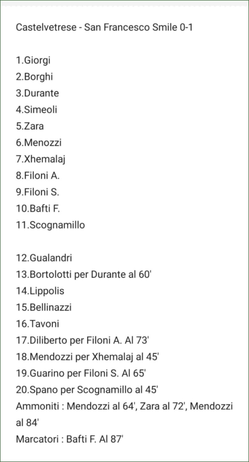 17/11/2019 - TERZA CAT. MO GIR. A 10° GIOR. - CASTELVETRESE-SAN FRANCESCO SMILE: 0-1