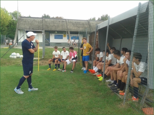 Nella foto: mister Roberto Cavalletti a colloquio con la squadra.