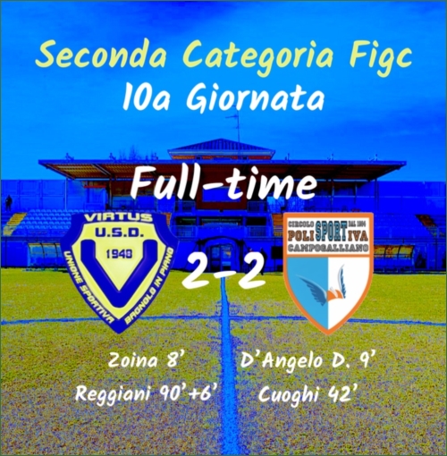 Un punto molto pesante, specialmente per come è arrivato. Dopo una partita giocata sottotono e con poche trame degne di nota, trovare un pari del genere è sicuramente un’iniezione di fiducia. Da sottolineare la caparbietà della squadra, vogliosa di restare aggrappata in ogni modo alla gara anche nei momenti più difficili, segno di un gruppo unito e coeso. Ora arriva un altro test impegnativo, sempre in casa contro la Campeginese. Forza Virtus!
