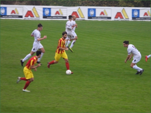 Bella partita fra Montecchio e Castellarano, due formazioni che lottano ad armi pari cercando di superarsi a vicenda. Alla fine ha avuto la meglio la squadra di Simone Siligardi, passata in vantaggio con un bel gol di Oliomarini, che poco dopo è stato protagonista dello sfortunato autorete che ha sancito il pari del Castellarano, ma la determinazione del Montecchio, che complessivamente ha meritato il successo e la qualità di un centravanti del calibro di Bedotti, hanno fatto la differenza. Finice 2-1. I padroni di casa partono subito forte: dopo 6’ di gioco bello scambio al limite fra Bedotti e Capitani con tiro di quest’ultimo rimpallato da un difensore. Al 18’ ancora i giallorossi: triangolazione al limite sempre fra il bomber e Capitani che porta quest’ultimo alla conclusione di poco sopra la traversa. Al 24' Bevilacqua si libera nello stretto e conclude bene appena fuori area, ma il portiere ospite, con un miracolo, devia in angolo. Dalla successiva battuta nasce il gol del vantaggio giallorosso: palla di Fornaciari per la testa di Jacopo Oliomarini che va in cielo e anticipa tutti, mettendo la sfera alle spalle dell’incolpevole Leonardi. Il Castellarano reagisce subito e al 30’ cerca il pari con una gran girata di Corbelli che viene neutralizzata dall’ottimo intervento del portiere Borrelli. Gli ospiti spingono e al 33’, da corner, Belfasti calcia benissimo a centro area, Oliomarini prova a liberare in rovesciata, ma scivola e mette la palla nella propria rete. Nella ripresa il Montecchio vuole chiudere la contesa, ma il Castellarano non ci sta. Al 3’ cross rasoterra di Pavarini dalla destra per Capitani che si inserisce in mezzo ai 2 centrali e calcia di prima, sul primo palo, ma il portiere salva la propria rete con un grande intervento in angolo. Al 18’ discesa di Guareschi sulla sinistra, dove l’esterno salta due avversari e mette al centro, ma nessun compagno sfrutta l’assist. Al 22’ inizia lo show del bomber Bedotti che, si accentra dopo uno scambio con Fornaciari e lascia partire un bolide dai 25 metri che si stampa sulla traversa. Risponde il Castellarano con un tiro Corbelli che esce di poco al termine di una splendida azione manovrata dai rossoblù; poi, ancora Bedotti, scatenato, sulla sinistra da dove mette in mezzo un bel pallone, ma il portiere avversario blocca e anticipa tutti. Al 42’, dopo una bellissima azione manovrata, Bedotti riceve palla dai 20 metri dal solito Fornaciari, ispiratore di ogni manovra e con una splendida finta si libera del diretto marcatore, per poi scoccare un bolide che si infila in fondo al sacco alla destra del portiere Leonardi, vanamente proteso in tuffo. Negli ultimi minuti il Castellarano si propone molte volte in avanti, ma non lo fa con la necessaria cattiveria e termina la gara anche senza allenatore visto che Manuel Pittalis, reo di aver detto qualcosa di troppo all’arbitro, guadagna anzitempo la via degli spogliatoi.